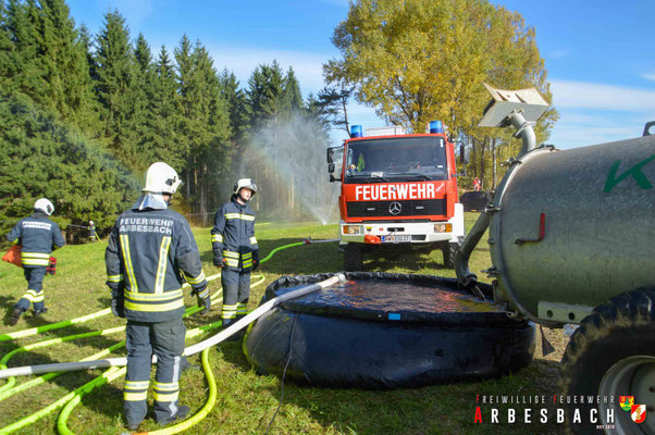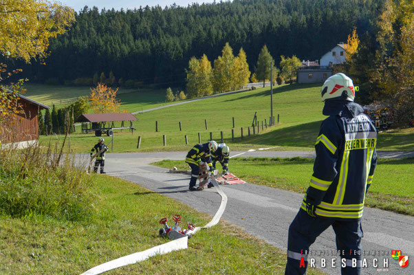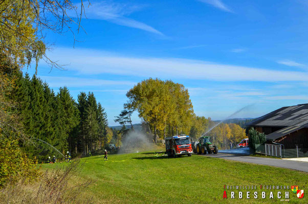 Von der FF Arbesbach nahmen das HLFA-3 und das LFA-B an der Übung teil. Die Besatzung des HLFA-3 war mit dem Schutz eines Stallgebäudes sowie der Bekämpfung eines Waldbrandes beauftragt. Die Wasserversorgung wurde durch Landwirte mit Güllefässern sichergestellt, die das Wasser in einen Falttank einbrachten, von dem aus es weitergepumpt wurde. Auch die Mannschaft des LFA-B unterstützte die Brandbekämpfung im Wald und wurde über das HLFA-3 mit Wasser versorgt.